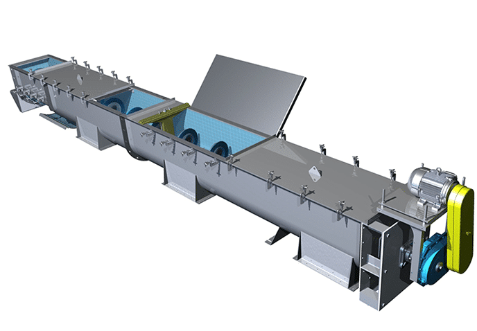 Horizontal screw conveyors are the most widely used type of screw conveyor. Used to convey bulk materials from one part of a process to another, horizontal screw conveyors are available in a wide range of sizes, lengths, configurations and materials of construction.